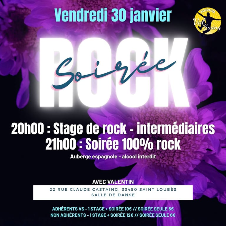 L’association Val’Swing vous convie à une soirée exceptionnelle dédiée au Rock le vendredi 30 janvier à partir de 20h00, avec auberge espagnole